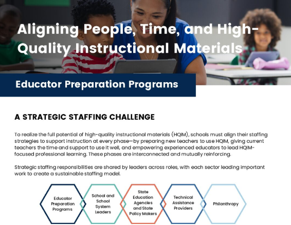 separate efforts when they are deeply intertwined. A strong investment in educator excellence, beginning with educator preparation programs and continuing through leadership development, is essential to realize the full potential of high-quality instructional materials (HQIM).
